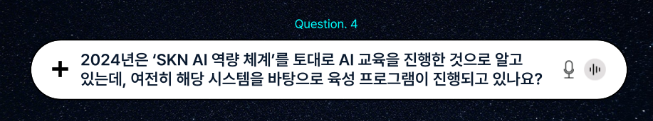 작년까지 SKN AI 역량 체계는 유효했으나 올해는 종료되었습니다. 체계 업데이트보다 ‘실질적인 업무에서의 효율화’를 위해 올해부터는 AI Frontier 선발을 통해 조직별로 효율화가 가능한 프로세스를 발굴하고, AI/DT 접목을 통해 기존 업무 수행 방식에 실질적인 변화를 만들어 내는 작업을 주도하고 있습니다.