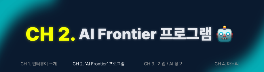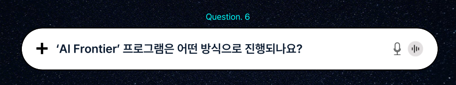 ‘AI Frontier’는 과제별로 필요한 산출물의 형태를 직접 만들어 내기 위해 ‘밀키트(=어떠한 기능을 수행하는 모듈)’를 만드는 실습을 해보고, 이것을 응용하여 결과적으로 원하는 산출물까지 도달할 수 있게 하는 프로그램입니다. AI를 기저에 두고 하는 하나의 장기 프로젝트라고 보시면 되고, 직군별로 5주 동안 진행됩니다.
