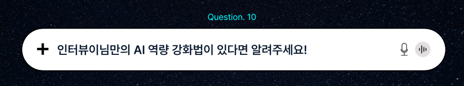 당장의 퍼포먼스를 내려는 것보다 ‘나는 AI를 이렇게 쓰고 있고, 습관화도 이렇게 들였고, 결국 이 회사에 들어와서는 나의 이런 attitude(접근방식)가 이렇게 사용될 것이다’의 확장적 개념으로 접근해 보시면 좋을 것 같습니다. 복잡한 AI 활용보다, AI를 일상 속 습관으로 자연스럽게 정착시키는 과정이 생각보다 어렵다는 것을 느끼실 겁니다.