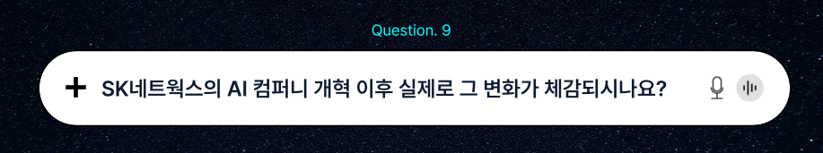 지금까지 임직원의 AI 역량 강화를 위해 노력하는 선유진 매니저님과 함께 SK네트웍스만의 AI 능력 향상법에 대해 알아보았습니다. 바쁘신 와중에도 시간 내시어 인터뷰에 흔쾌히 응해주신 선유진 매니저님께 진심 어린 감사의 인사를 드립니다. 사회의 변화에 반응하고 그 변화를 뛰어넘는 혁신을 만들기 위해 적극적으로 배우고 실천하는 SK네트웍스만의 특별한 기업 문화를 알 수 있는 시간이었습니다.