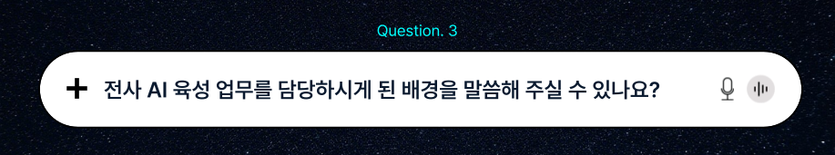 인공지능 대학원 진학 이후부터 본격적으로 시작된 것 같습니다. 3년 전, 개인적인 호기심과 연구를 목적으로 대학원에 진학한 것이었으나 급작스레 그룹에서 AI가 큰 화두로 다루어지게 되며 HRD에 있던 제가 자연스럽게 이 업무를 담당하게 되었습니다.
