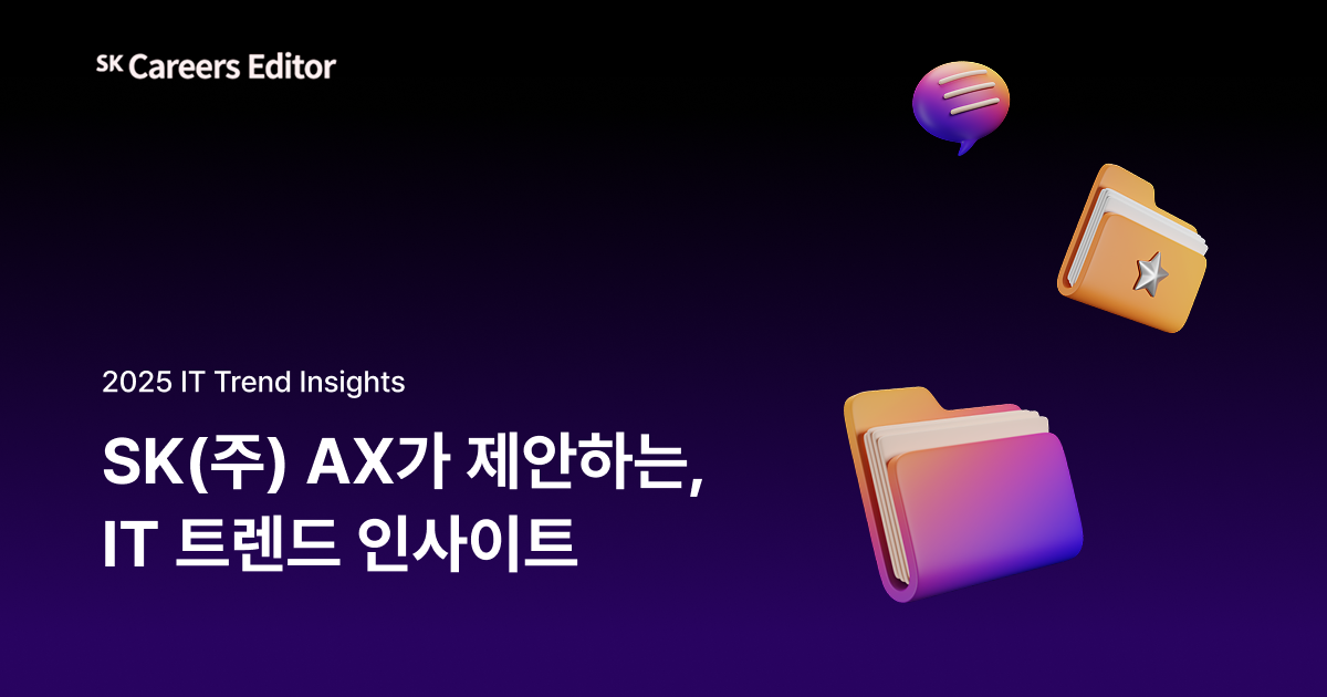 SK AX는 AX 선도 기업으로서, 다양한 산업 현장에서 프로젝트를 수행하며 축적한 경험과 기술력을 토대로, 변화의 흐름을 읽고 미래를 준비하는 시각을 제시해 왔는데요. 이번 기사에서는 제가 공부한 SK AX만의 IT 인사이트를 여러분들께 공유 드리려고 합니다.