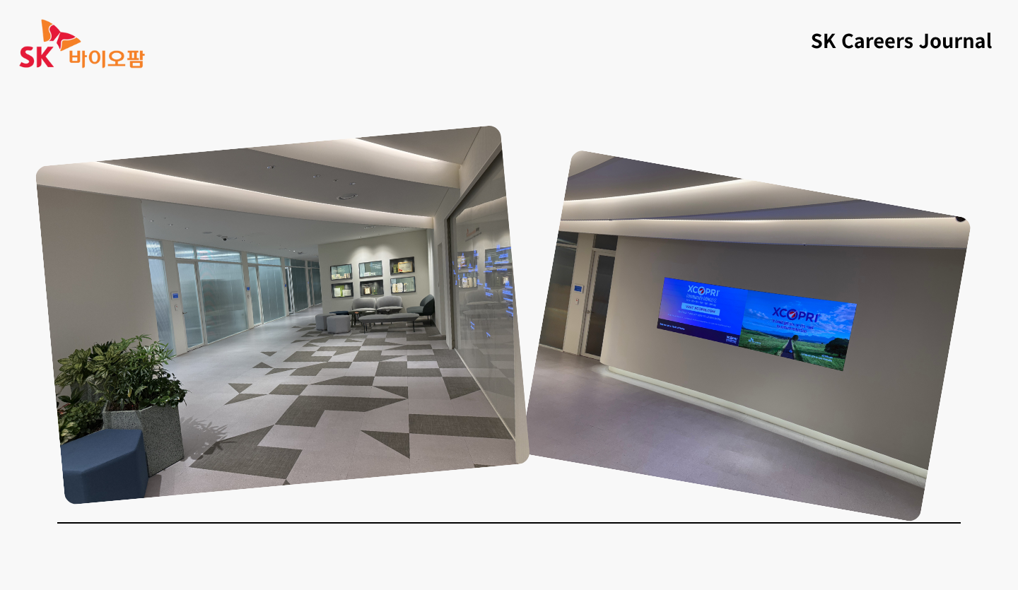 깔끔한 오피스와 체계적인 시설 그리고 복지 공간까지 SK바이오팜 오피스를 둘러보며 느낀 건 단순히 좋은 회사 이상의 무언가였습니다. 특히 실험실에서 만난 연구원분의 한마디가 오래 마음에 남습니다. “제가 참여했던 약이 누군가의 삶을 더 나아지게 한다는 것이 자부심이 된다.” 그 말 속에는 SK바이오팜이 추구하는 진짜 행복이 담겨있던 것 같습니다. 이곳의 행복은 단순히 근무 환경이나 복지에서 끝나지 않고 환자의 삶을 바꾸는 보람으로 이어지고 있었습니다.