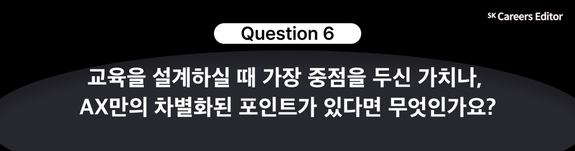 두 교육 담당자님과의 인터뷰를 통해 SK㈜ AX의 신입사원 교육 프로그램이 소프트랜딩(soft landing)을 돕기 위한 전략·문화·제도 교육부터 On-site Experience, 팀 프로젝트, 워크숍 등 다양한 프로그램으로 신입 구성원이 회사의 사업과 일하는 방식을 경험하며 이해할 수 있도록 설계되어 있다는 점을 확인할 수 있었는데요. 어떠셨나요?